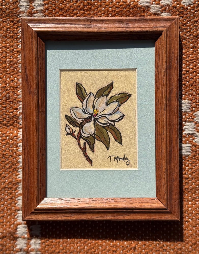 This sweet mini magnolia is made with pastels and ink.