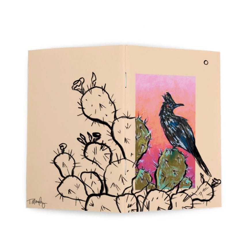 The 2 designs are inspired by my Window series. The large sketch book is 5.25x8.25 and has 144 pages. The pocket sketchbook is 3.5x5.5 and has 48 pages. Pages are blank.