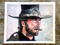 Archival limited edition print of Clint Eastwood. This print is 18x22” with a white boarder for easy framing. Each is signed, titled, and numbered in an edition of 20. Professionally printed on cold press water color paper. DSL scanned and color matched for the highest quality.